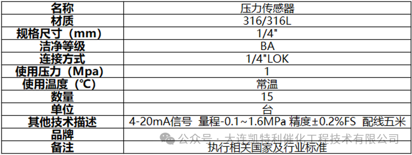 1.采购项目简介::本采购项目 压力传感器 采购人为 大连凯特利催化工程技术有限公司 ,现对该项目进行公开询比采购,诚邀符合供货商积极报价。