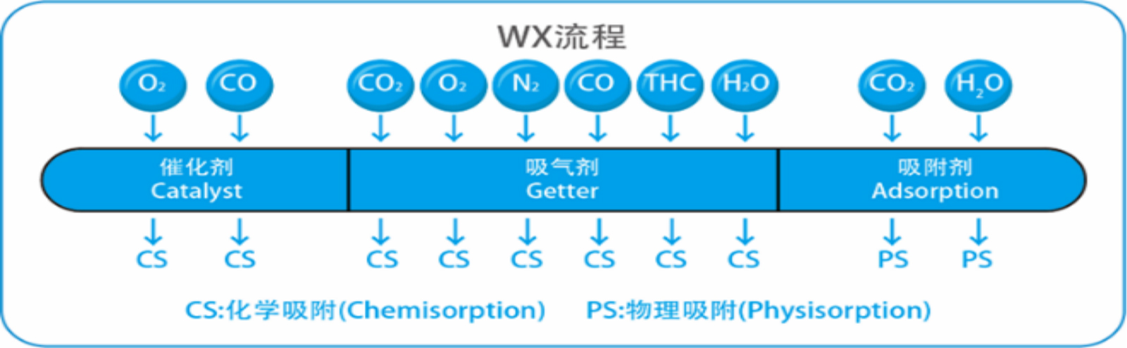 本纯化器采用WX流程对氢气进行纯化,原料氢气进入纯化器后,经过常温吸附流程可初步将H