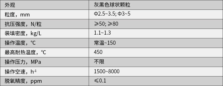 本产品可用于石油化工、煤化工、冶金、电子、轻工、科学研究及其他新技术领域含氢气体直接脱氧,或用于无氢气体加氢脱氧,也可用于惰性气体直接脱氧。