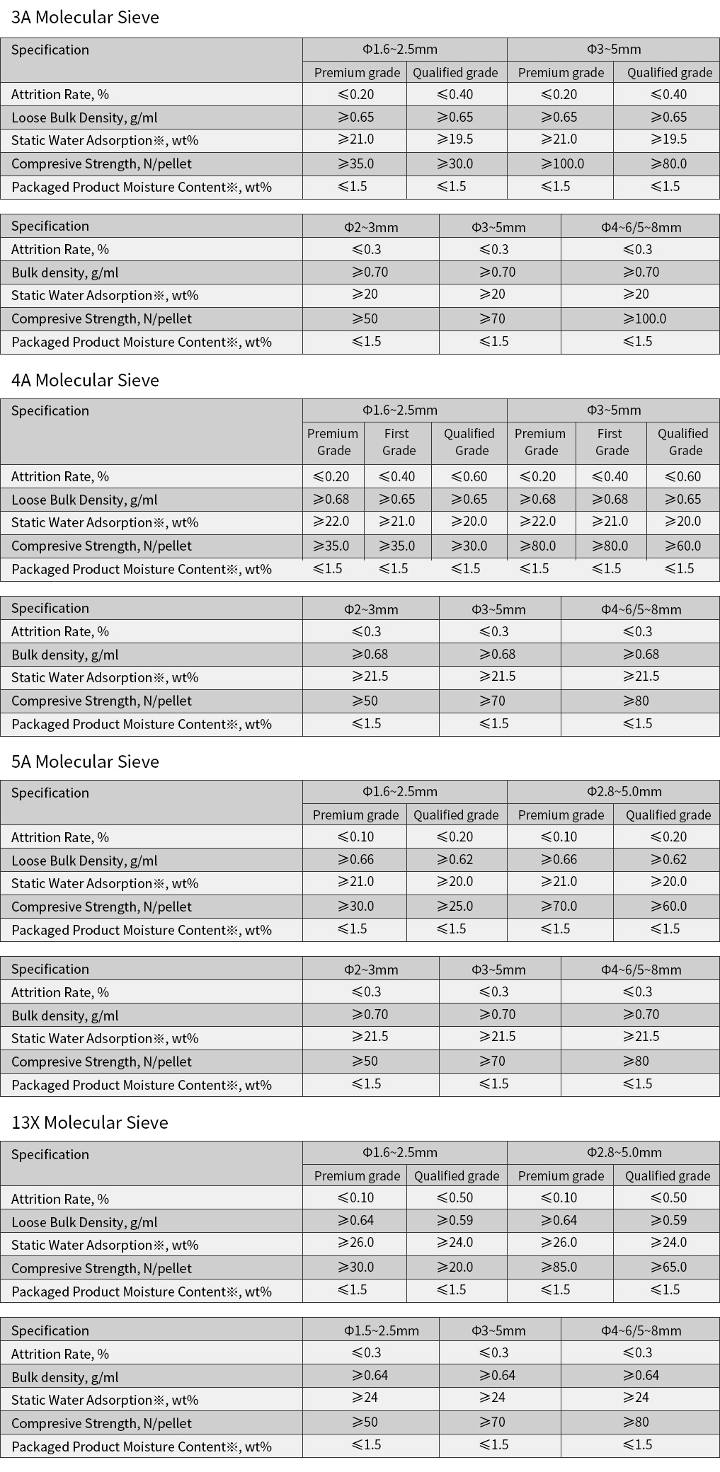 This series of molecular sieves includes types 3A, 4A, 5A, and 13X, widely used in natural gas and petroleum gas drying processes for selectively adsorbing water and other molecules from enclosed gas or liquid systems. The product series features high mechanical strength and minimal dust generation.