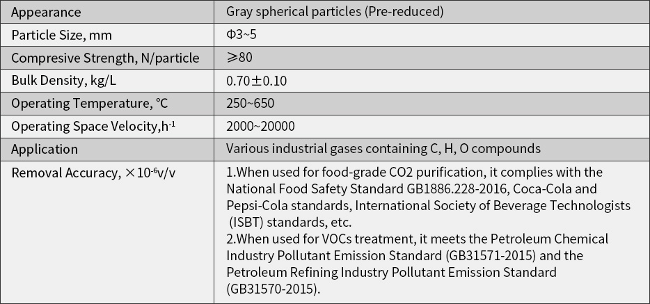 2O,, enabling the purified gas to comply with national VOC emission standards. It is also applicable for the purification of food-grade CO