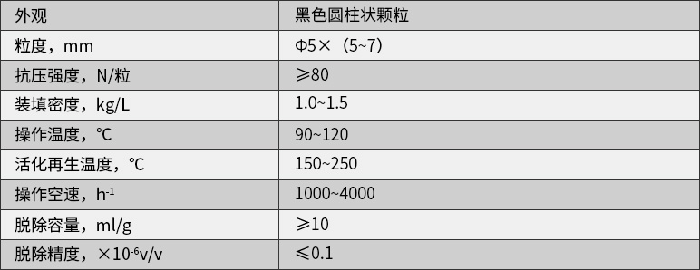 本产品广泛应用于聚烯烃行业乙烯中微量CO的脱除,同时具有脱除微量氧和硫的功能。